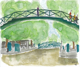 3. Le Canal Saint-Martin : Le Canal Saint-Martin est un peu comme le “chouchou” de Paris : il est à la fois romantique, pittoresque et légèrement snob. C’est ici qu’Amélie déambule, dansant entre les péniches et les ponts. Vous pouvez imaginer le bruit de l’eau, les reflets des réverbères, et bien sûr, les bateaux-mouches qui passent à toute vitesse (bon, ils sont un peu plus lents que dans les films). Si vous n’êtes pas en train de faire une séance photo, vous pourriez même vous laisser tenter par un pique-nique au bord de l’eau, tout en vous demandant si vous n’êtes pas en train de vivre une scène digne d’Amélie elle-même. Pas de panique, même si personne ne vous lance des sourires mystérieux, la magie de Paris reste toujours là.