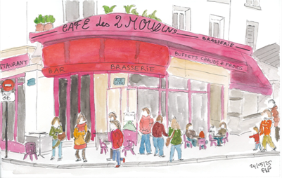 8. Le Café des Deux Moulins : Ce lieu mythiques situé au 15 rue Lepic où Amélie Poulain servait des crêpes et des expressos avec une finesse digne d’un chef étoilé. Bon, d’accord, pas exactement, mais vous avez saisi l’idée ! Ce café, c’est bien plus qu’un simple endroit pour boire un café, c’est un véritable film dans un film. Le décor a inspiré des milliers de voyageurs venus chercher une trace de l'intrépide Amélie. Installez-vous à une table et laissez-vous bercer par la douce ambiance, en espérant que la serveuse ne vous demande pas de courir après un client insistant. Si vous avez de la chance, vous croiserez peut-être une personne qui prendra une photo devant le "Café", tout comme vous !