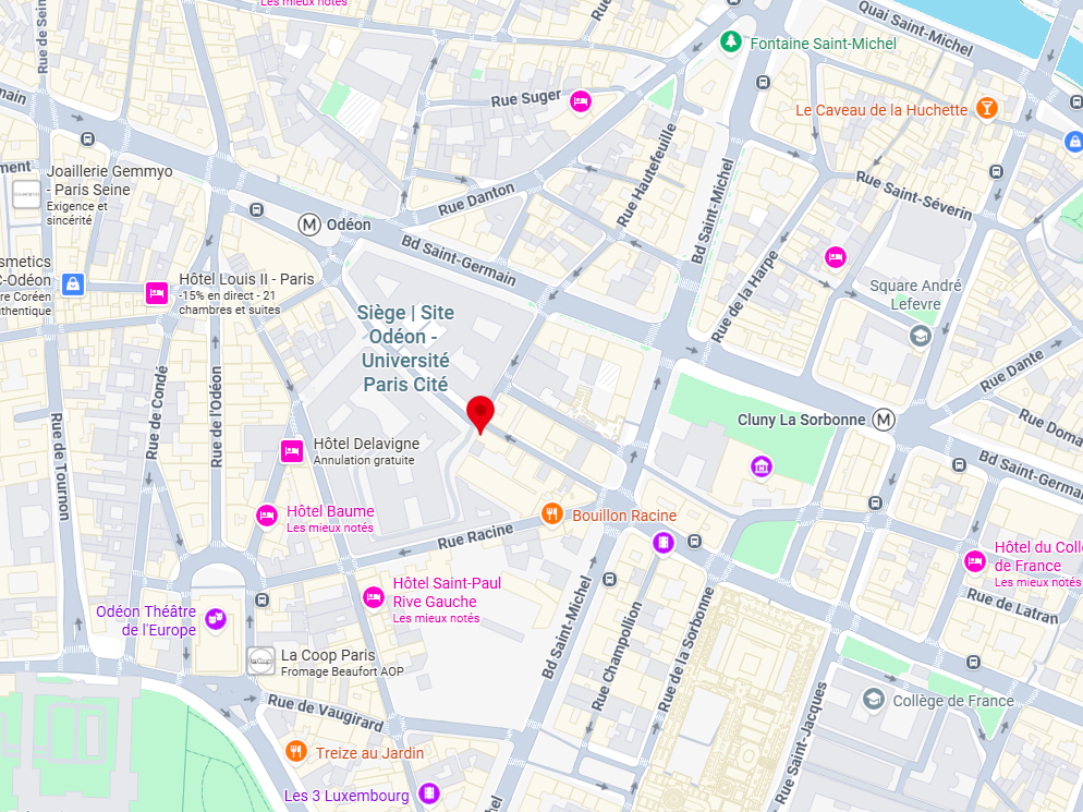 Adresse : Campus des Cordeliers, Sorbonne Université – 15 rue de l’École de Médecine, 75006 Paris
