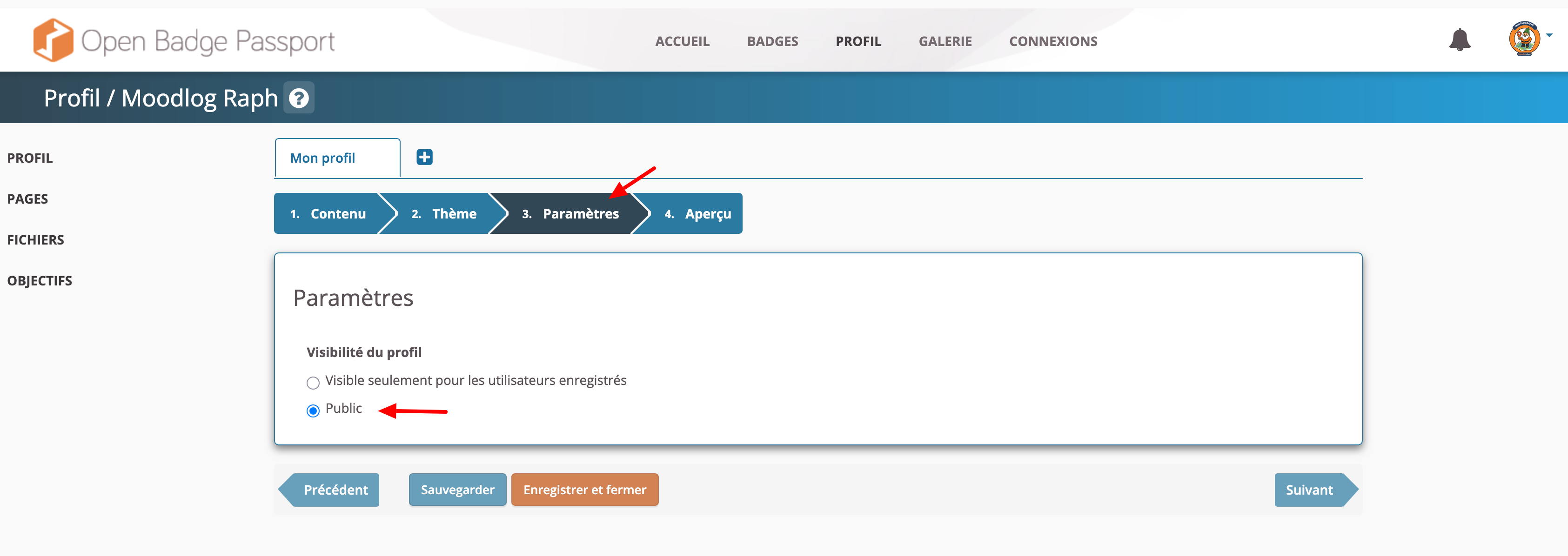 Et Je mets ma page en visibilité publique pour être vu.e des autres Moodleurs